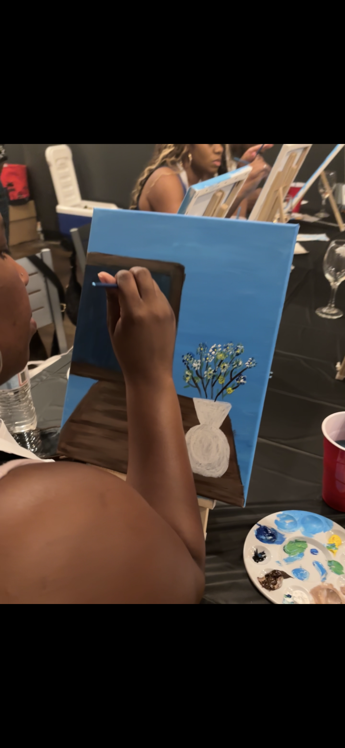 "The atmosphere was a very chill and pleasant vibe it was great place to learn how to paint with others who were not the most artistically inclined but still be able to create something beautiful together?